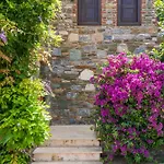 Caratterizzata da pavimenti in legno, il patio e il balcone presentano un divano e una scrivania. Dotata di un camino in pietra e finestre insonorizzate, la Ionia House Villa include anche servizi in camera come la possibilità di stirare e un impianto di climatizzazione. Il bagno è dotato di una cabina doccia e un bagno alla francese, asciugacapelli e asciugamani.